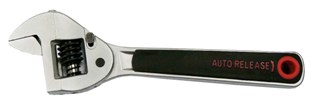 8" Auto-Release Adjustable Wrench: 25mm Open Wide * Easy on/off switch * Turn on (right)-ratchet function * Turn off (left)-regular function Item No. | Description | | HA21-AR85 | 8" Auto-Release Adjustable Wrench without rubber grip Matt.Cr.Plated Material:6140 36sets/15/16KGS/1.125' | | HA21-AR86 | 8" Auto-Release Adjustable Wrench without rubber grip Phosphate-Black Finish Material:6140 36sets/15/16KGS/1.125' | | HA21-AR87 | 8" Auto-Release Adjustable Wrench with rubber grip Matt.Cr.Plated Material:6140 36sets/15.5/16.5KGS/1.125' | | HA21-AR88 | 8" Auto-Release Adjustable Wrench with rubber grip Phosphate-Black Finish Material:6140 36sets/15.5/16.5KGS/1.125' |