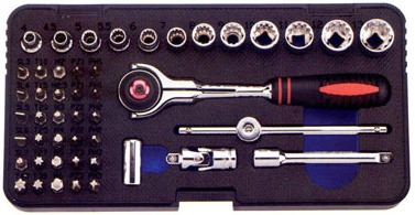 Contents: * 1pc - 1/4"DR.72T Flexible Ratchet Handle * 1pc - 1/4"DR. Extension Bar * 1pc - 1/4"DR. 4-1/4"(L) Sliding T-Bar * 1pc - 1/4"DR. Universal Joint * 1pc - 1/4"DR. Bit Adaptor * 12pcs - 1/4"DR. Spline Socket 4-4.5-5-5.5-6-7-8-9-10-11-12-13mm * 30pcs - Power Bits, S2 H2-2.5-3-4-5-6 T9-10-15-20-25-27-30-40 SL3-4-5-6 PZ1-1-2-2 PH1-1-2-2-3-3 |