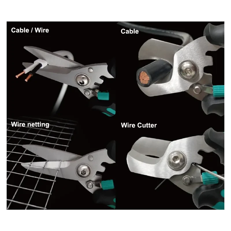 ˙For cutting off cable, wire netting, aluminum-ware, and leather.